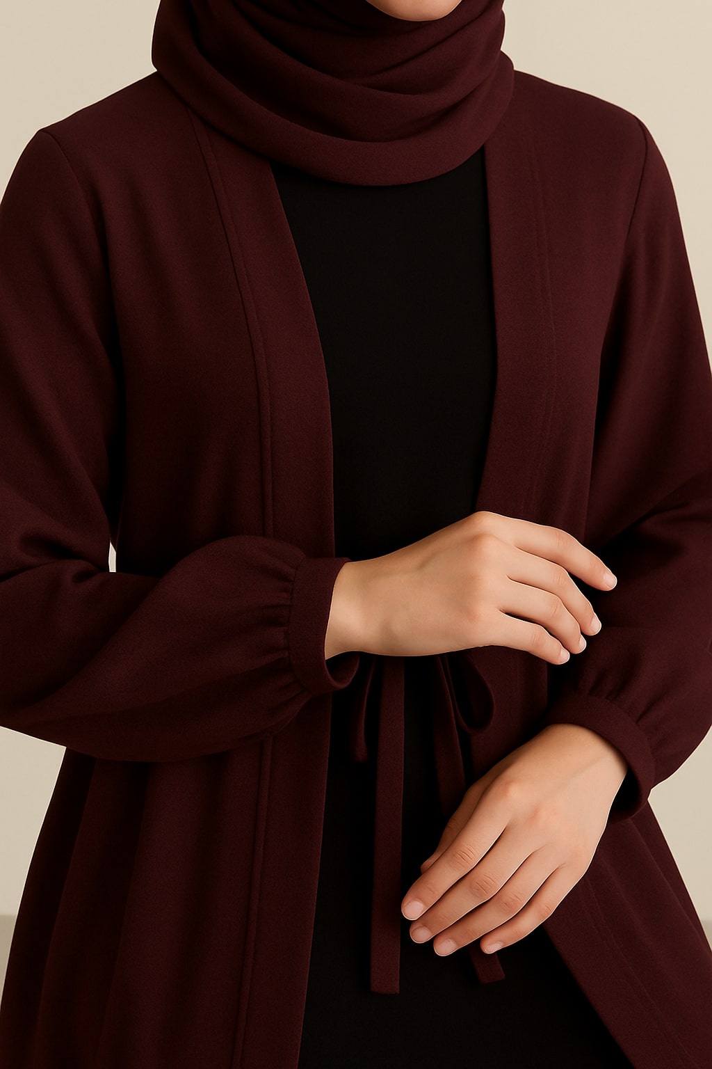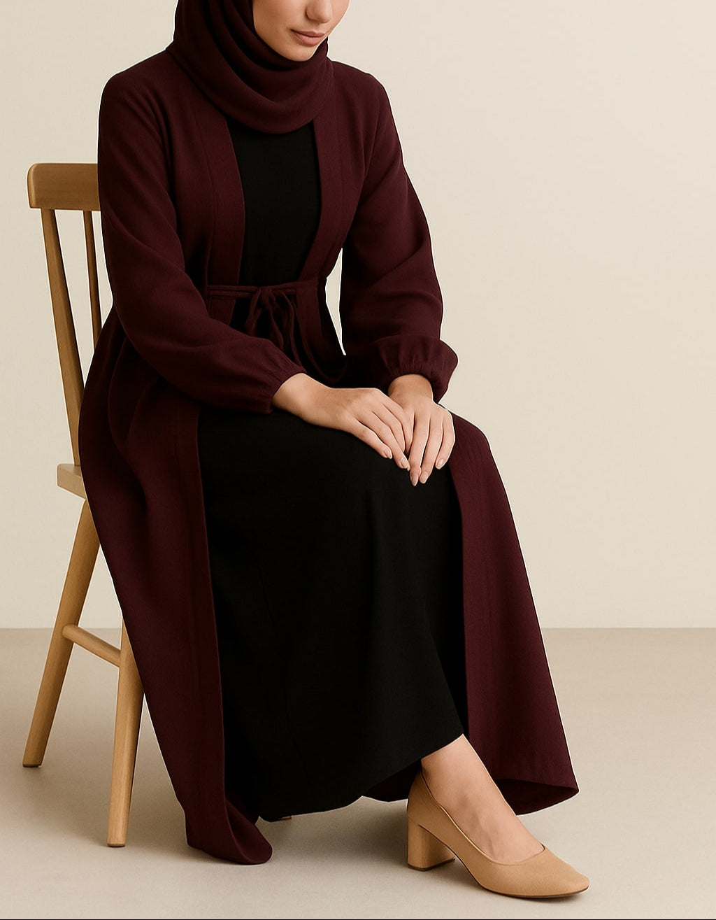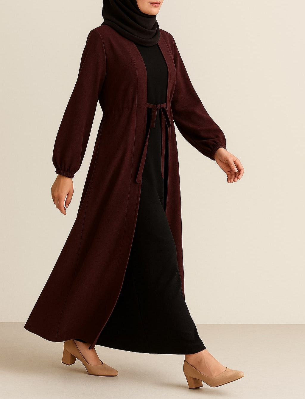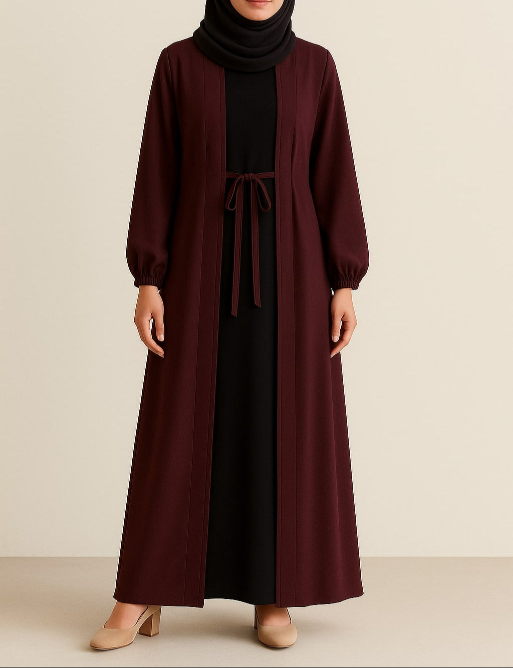 Carob Grace – Maroon Kimono Abaya(Black Inner)