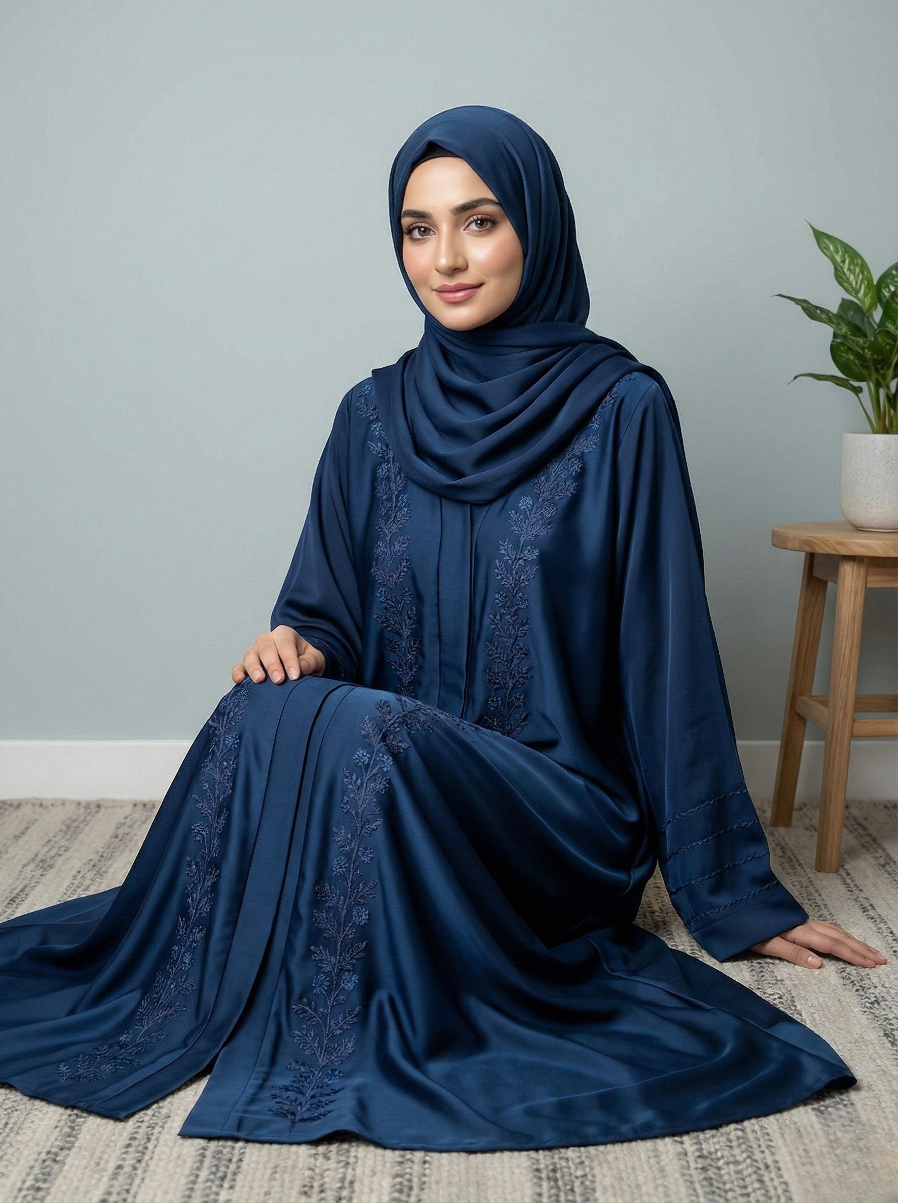 Each set includes a matching silk hijab, thoughtfully paired to complete a graceful and polished look.
