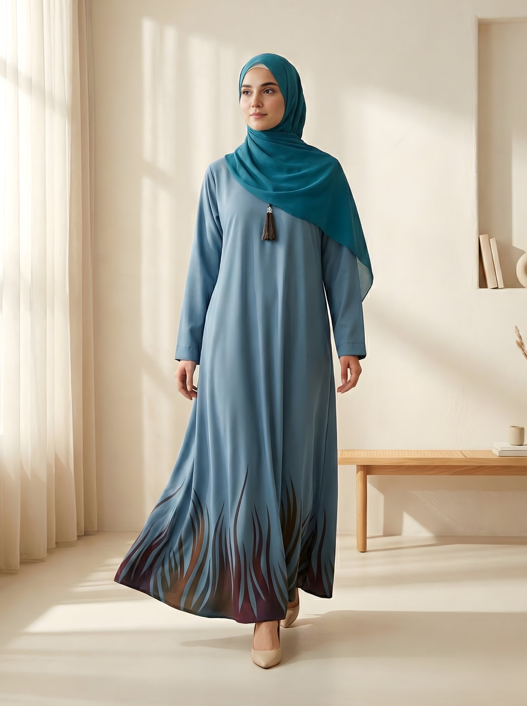 Our hijabs and abayas are crafted from premium-quality fabrics such as georgette, chiffon, nidha, crepe, and linen blends — ensuring comfort, elegance, and durability. Fabric type is mentioned in each product description.