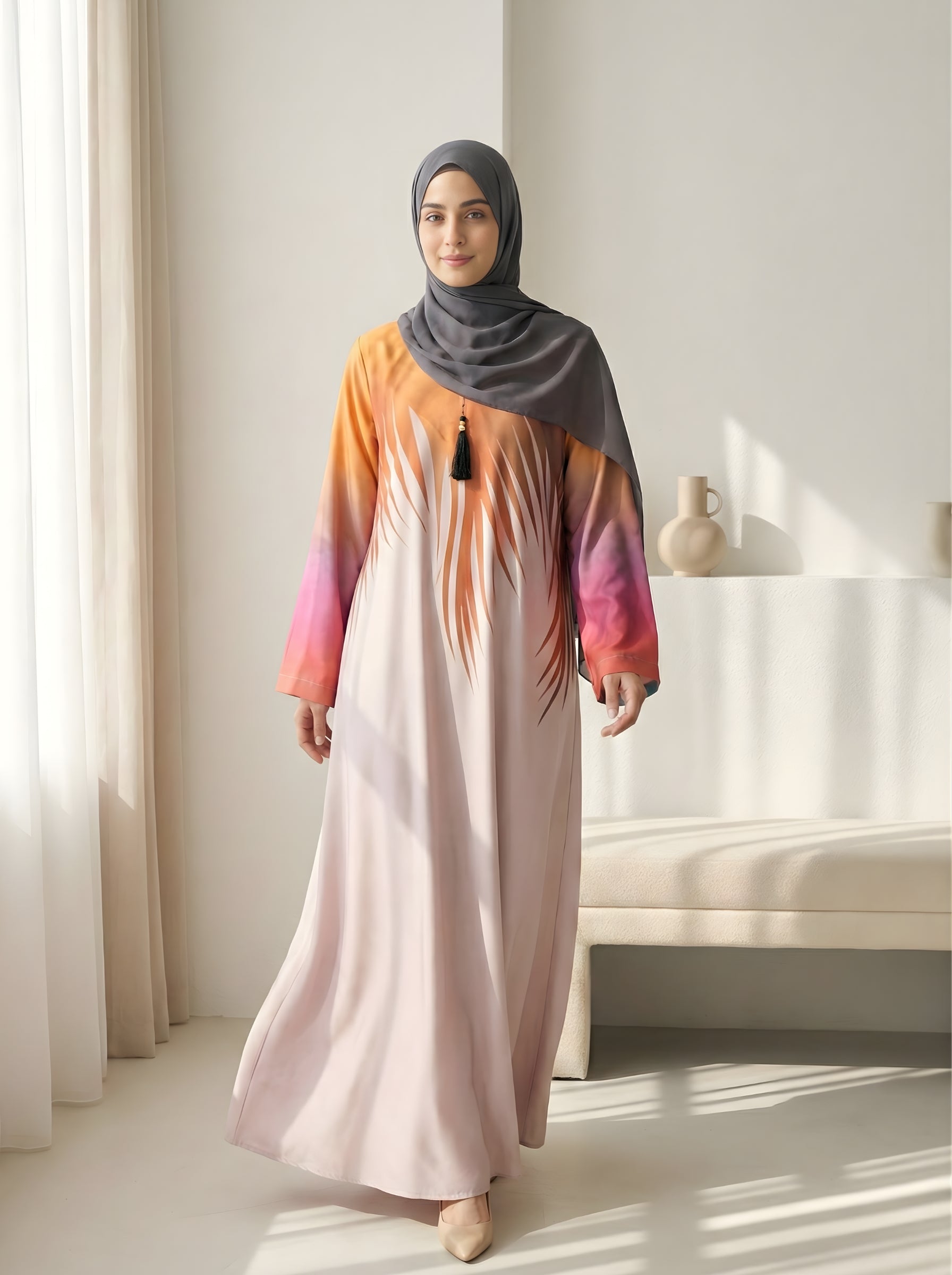 Experience graceful simplicity with the Merina Printed Abaya from our Naqoosh Collection. Crafted from soft, breathable Nida fabric, Merina features a clean, elegant silhouette adorned with subtle artistic prints. Its refined look and gentle flow make it perfect for women who appreciate effortless style with a touch of charm. Ideal for daily wear, meetups, or evening outings, Merina brings comfort and confidence together beautifully.